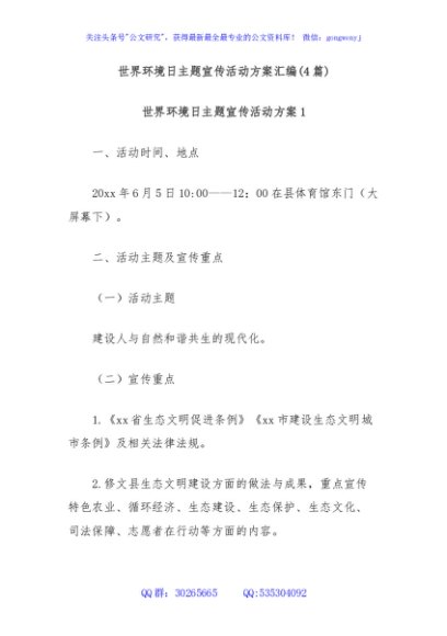 / (4篇)世界环境日主题宣传活动方案汇编