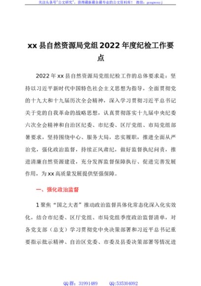 / xx县自然资源局党组2022年度纪检工作要点