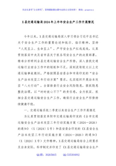 / X县交通运输局2024年上半年安全生产工作开展情况