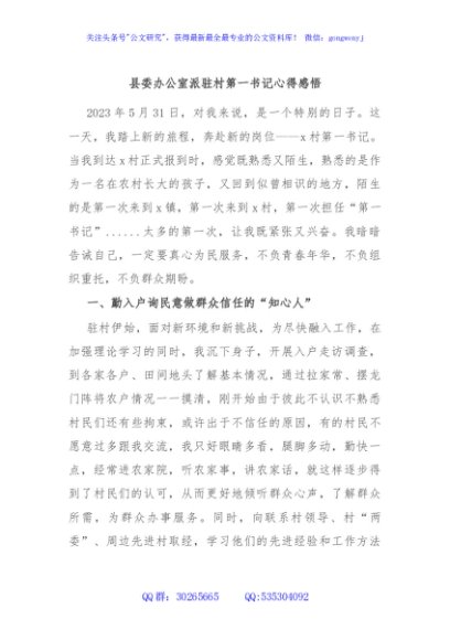 / 县委办公室派驻村第一书记心得感悟