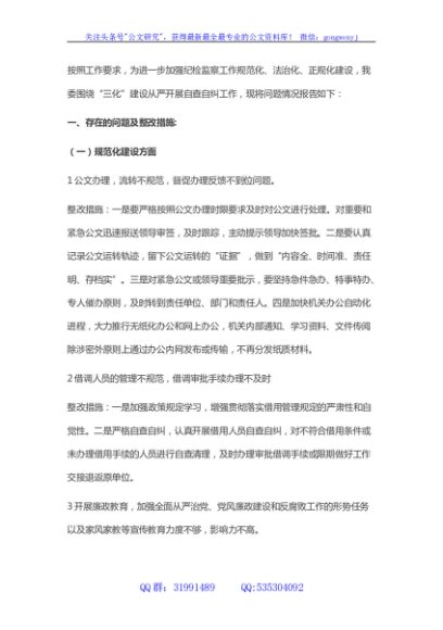 纪检监察工作规范化法治化正规化建设自查自纠报告