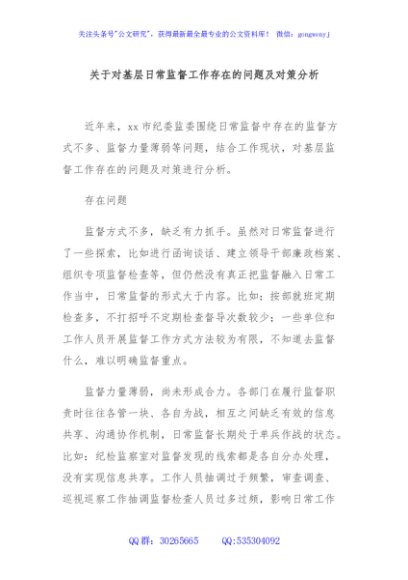 / 关于对基层日常监督工作存在的问题及对策分析