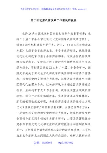 / 关于区政府机构改革工作情况的报告