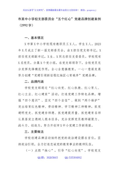 / 市某中小学校支部委员会“五个红心”党建品牌创建案例(2992字)
