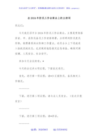 / 在2024年防汛工作会商会上的主持词