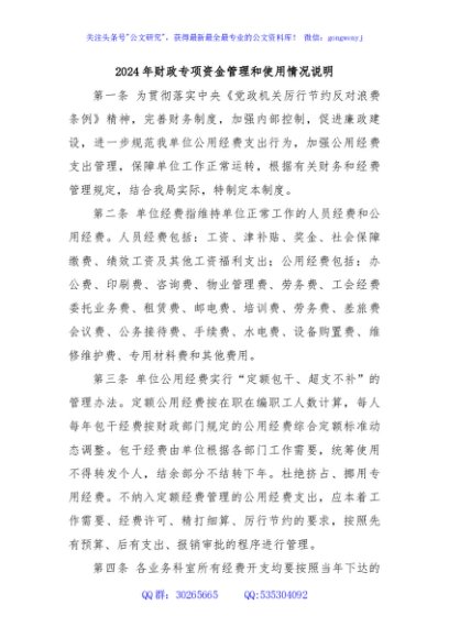 / 2024年财政专项资金管理和使用情况说明
