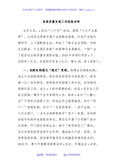 / 县高质量发展工作经验材料