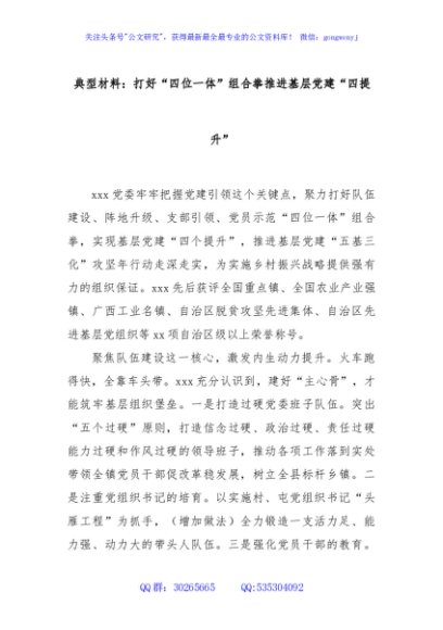 / 典型材料:打好“四位一体”组合拳推进基层党建“四提升”