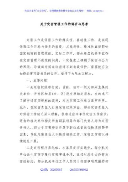 / 关于定密管理工作的调研与思考
