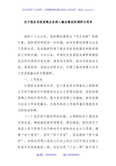 / 关于税务系统党建业务深入融合情况的调研与思考