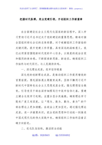 把握时代脉搏,突出党建引领,开创组织工作新篇章