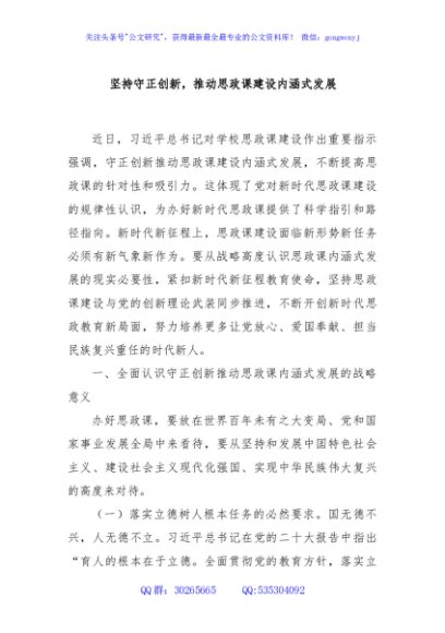 / 坚持守正创新,推动思政课建设内涵式发展