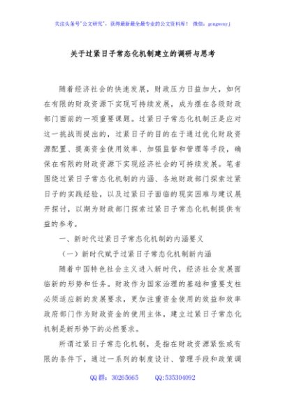 / 关于过紧日子常态化机制建立的调研与思考