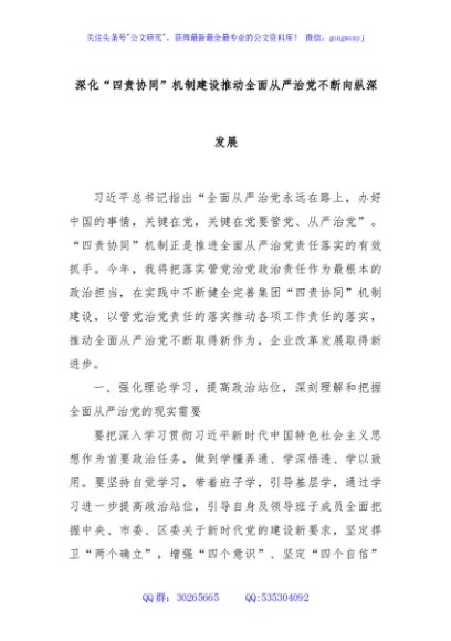 / 深化“四责协同”机制建设推动全面从严治党不断向纵深发展