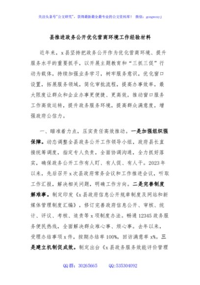 / 县推进政务公开优化营商环境工作经验材料