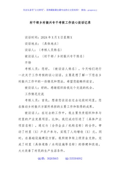 / 村干部乡村振兴专干考核工作谈心谈话记录