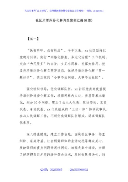 / (6篇)社区矛盾纠纷化解典型案例汇编