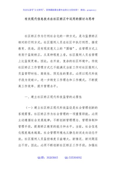 / 有关现代信息技术在社区矫正中运用的探讨与思考