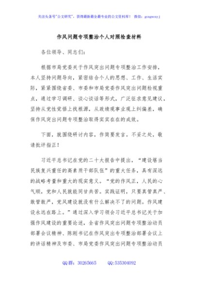 / 作风问题专项整治个人对照检查材料