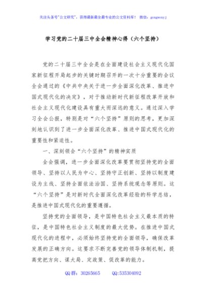 / 学习党的二十届三中全会精神心得(六个坚持)