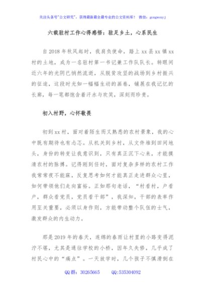六载驻村工作心得感悟:驻足乡土,心系民生