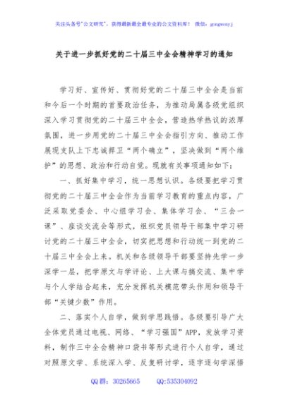 / 关于进一步抓好党的二十届三中全会精神学习的通知