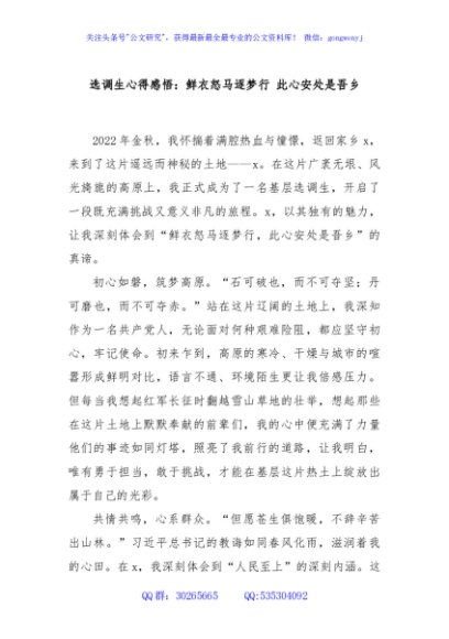 / 选调生心得感悟:鲜衣怒马逐梦行 此心安处是吾乡