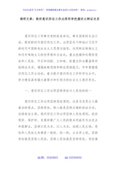 / 调研文章:做好意识形态工作必须科学把握四大辩证关系