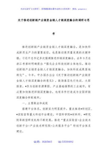 / 关于推进创新链产业链资金链人才链深度融合的调研与思考