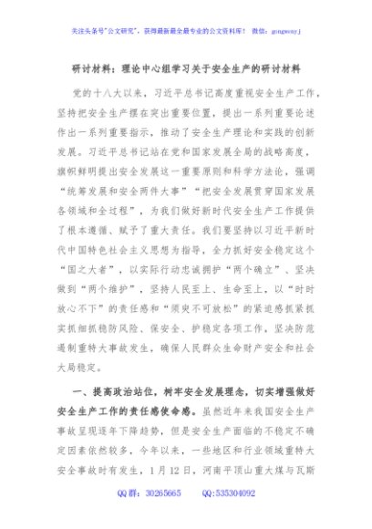 / 研讨材料:理论中心组学习关于安全生产的研讨材料