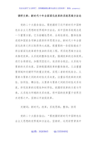 / 调研文章:新时代十年全面深化改革的系统思维方法论