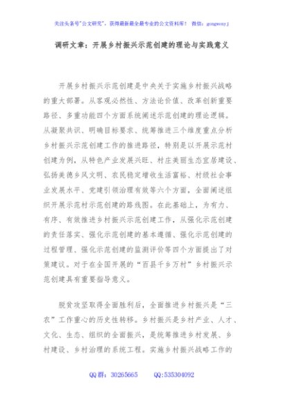 / 调研文章:开展乡村振兴示范创建的理论与实践意义