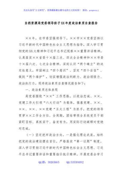 / 自然资源局党委领导班子XX年度政治素质自查报告