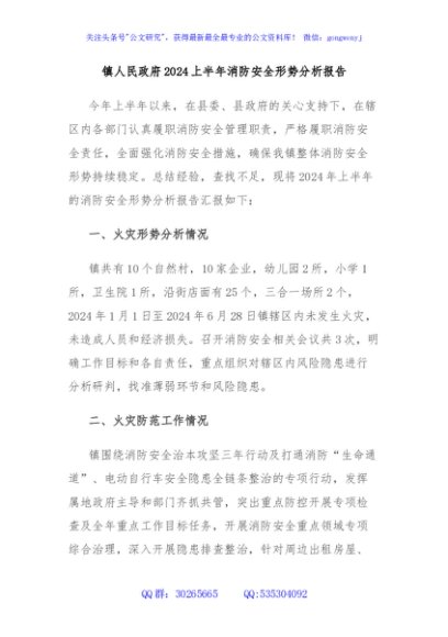 / 镇人民政府2024上半年消防安全形势分析报告