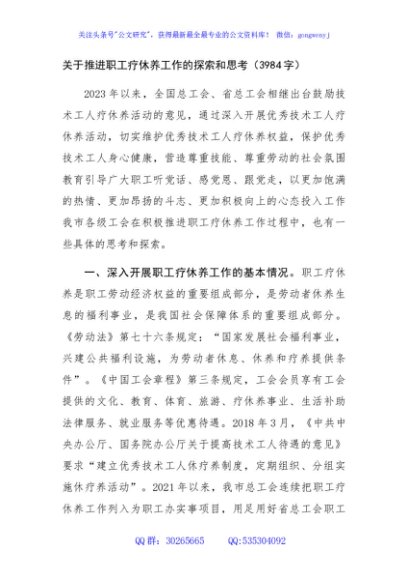 / 关于推进职工疗休养工作的探索和思考(3984字)