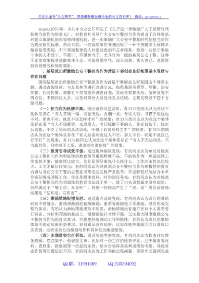 / 基层派出所激励公安干警担当作为,营造干事创业良好氛围调查报告