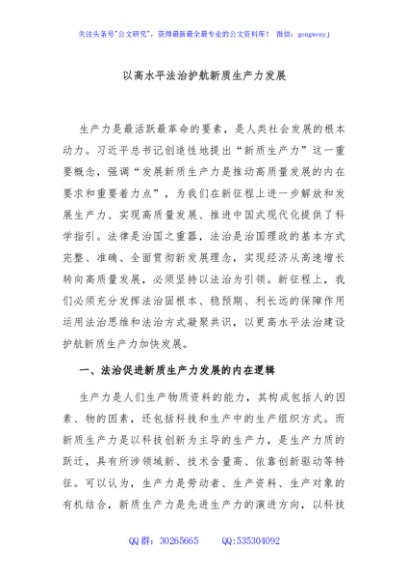 / 以高水平法治护航新质生产力发展