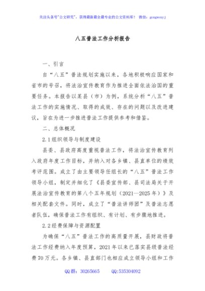 / 八五普法工作分析报告