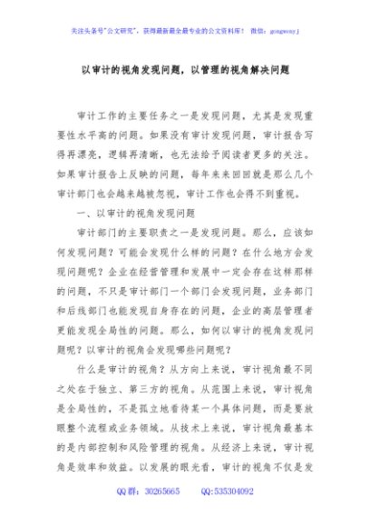 / 以审计的视角发现问题,以管理的视角解决问题
