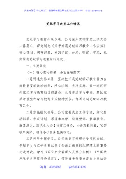 党纪学习教育工作情况
