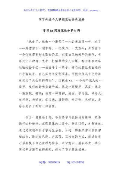 学习先进个人事迹党性分析材料