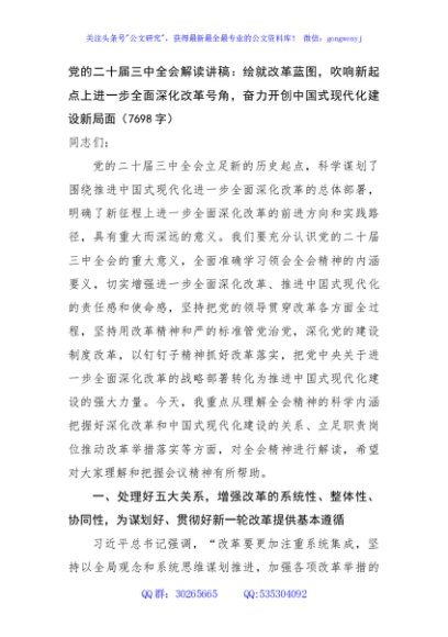 党的二十届三中全会解读讲稿:绘就改革蓝图,吹响新起点上进一步全面深化改革号角,奋力开创中国式现代化建设新局面(7698字)
