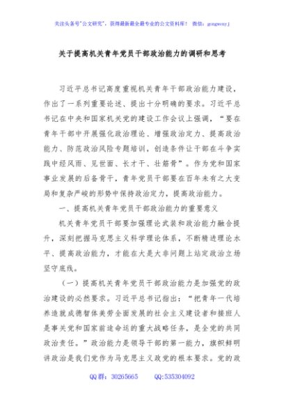 / 关于提高机关青年党员干部政治能力的调研和思考