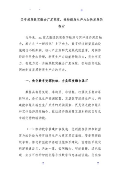 / 关于拓展数实融合广度深度,推动新质生产力加快发展的探讨