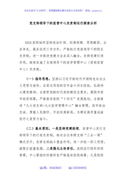 / 党支部领导下的医管中心负责制运行探索分析