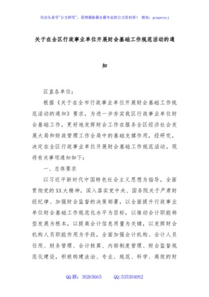 / 关于在全区行政事业单位开展财会基础工作规范活动的通知