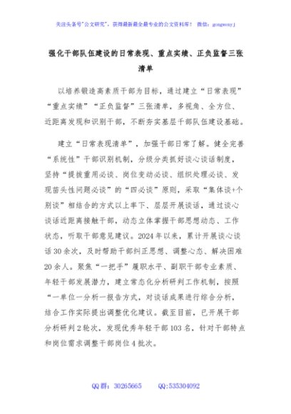 / 强化干部队伍建设的日常表现、重点实绩、正负监督三张清单