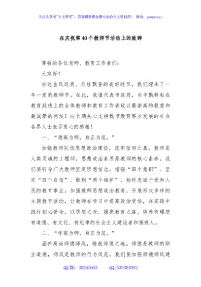 / 在庆祝第40个教师节活动上的致辞