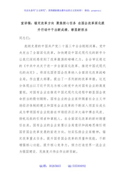 / 宣讲稿:锚定改革方向 聚焦核心任务 在国企改革深化提升行动中干出新成绩、彰显新担当