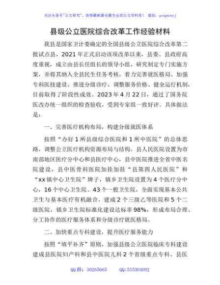 / 县级公立医院综合改革工作经验